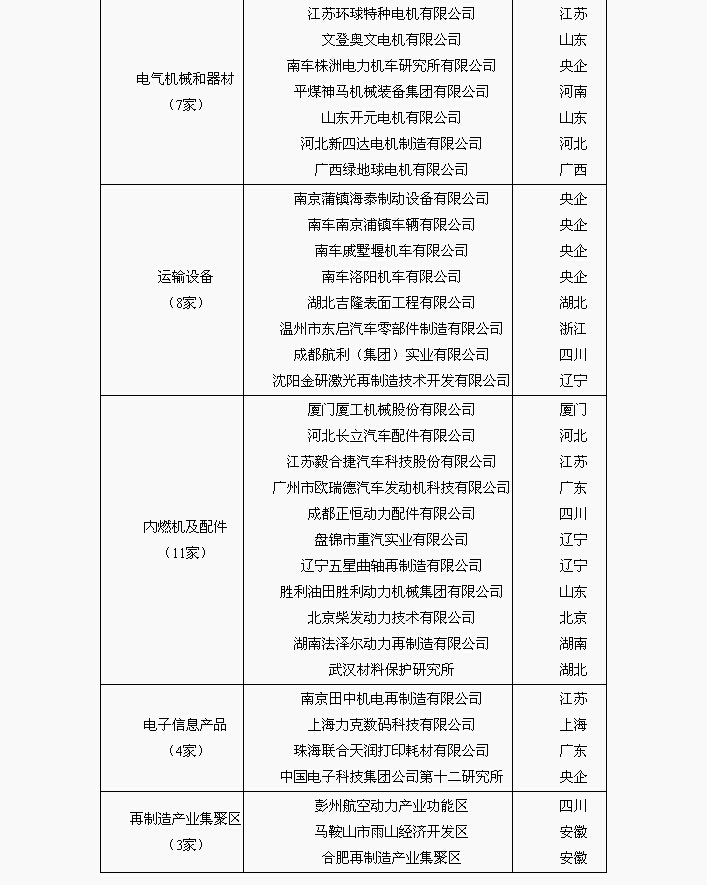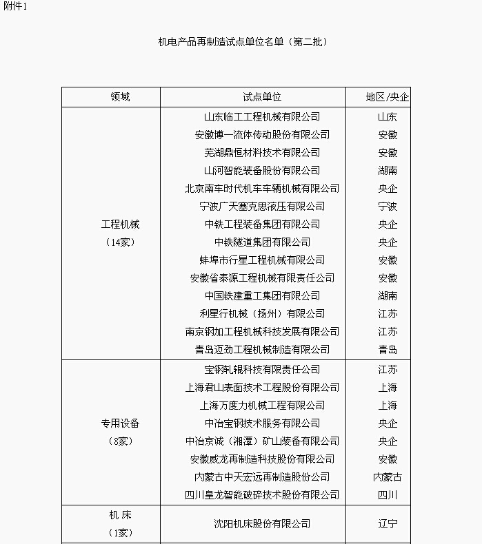 工业和信息化部关于印发《机电产品再制造试点单位名单(第二批)》的通知