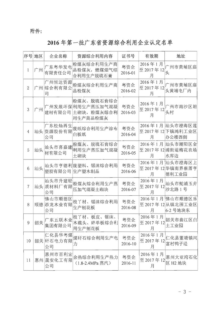 附件:2016年第一批广东省资源综合利用企业认定名单