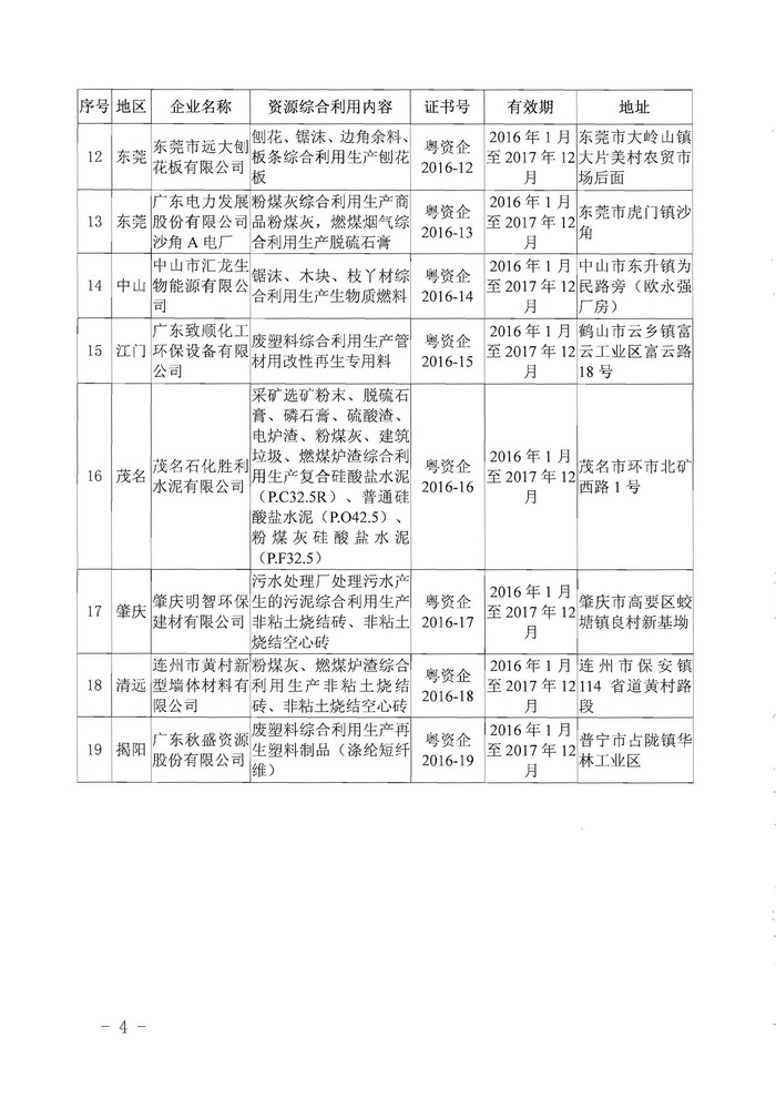 关于公布2016年第一批广东省资源综合利用企业认定名单的通知