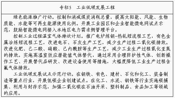 推进重点行业低碳转型。结合碳排放重点行业特点,制定重大低碳技术推广实施方案,促进先进适用低碳新技术、新工艺、新设备和新材料的推广应用。研究制定钢铁、建材、有色、化工等重点行业碳排放控制目标和行动方案,提升重点行业碳生产力水平。在重点行业,选择一批减排潜力大、成熟度高、先进适用的重大低碳技术示范推广,促进工业行业碳排放强度下降。