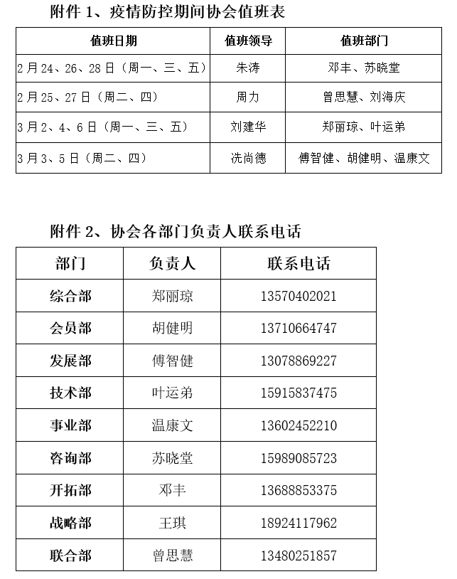 由于目前疫情情况仍处于紧张态势,为有效防范疫情,我会决定在2月24日-3月5日期间继续执行线上办公模式,在此期间协会办公地点仍安排轮值,各单位可正常与我会进行工作上的联系。