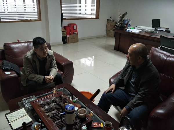 上图为胡健明副主任与江门市新会区金裕新型墙体有限公司负责人进行座谈交流