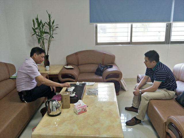 图2 图为我协会胡健明副主任和华粤安方逸豪副总经理进行座谈交流