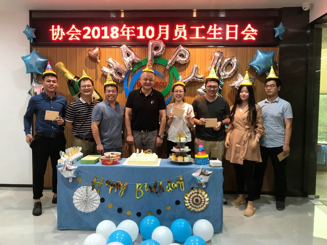 恰逢金秋十月,通过精心部署,协会10月员工生日会于2018年10月22日温馨举行,协会全体员工齐聚一堂共同为8名寿星展开庆生。