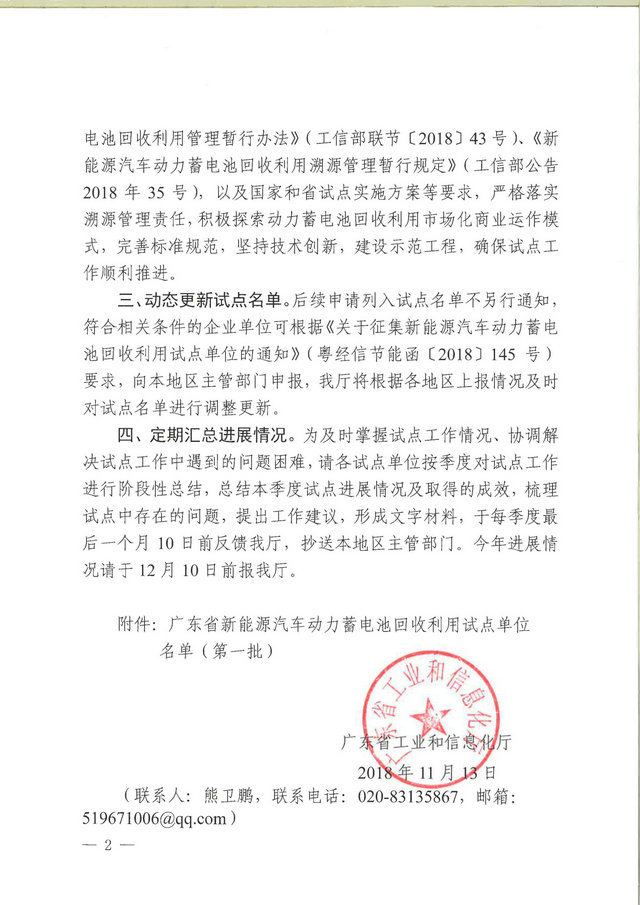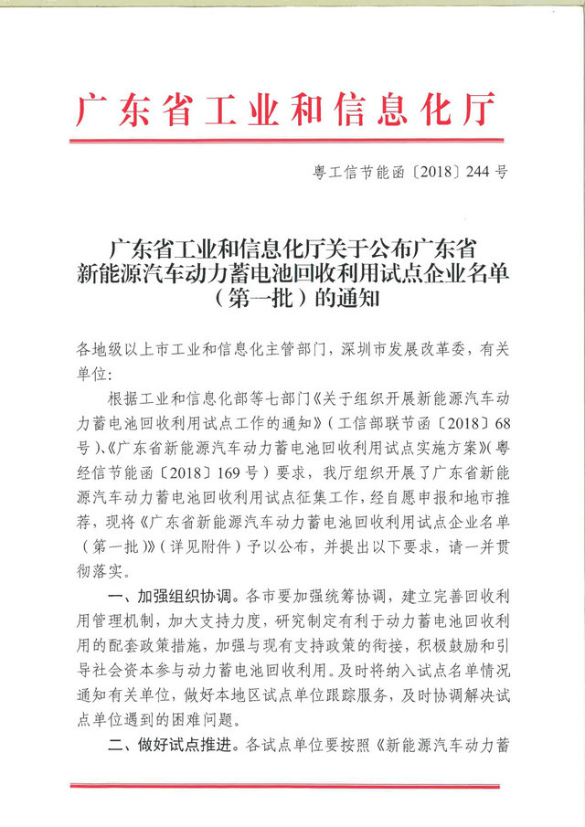 我协会被列入广东省新能源汽车动力蓄电池回收利用试点单位(第一批)