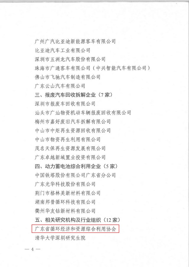热烈祝贺广东省循环经济和资源综合利用协会被列入广东省新能源汽车动力蓄电池回收利用试点单位(第一批)!