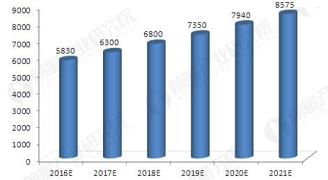 2016-2021年中国工业固体废物市场容量预测(单位:亿元)