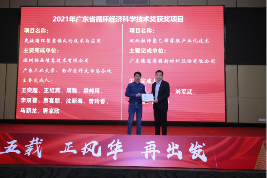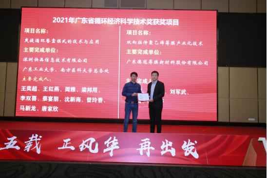 会上还对协会2021年度广东省循环经济和资源综合利用协会优秀会员单位、广东省资源综合利用龙头企业、广东省循环经济示范单位、广东省循环经济科学技术奖、循环经济和资源综合利用行业先进个人以及循环经济和资源综合利用行业领军人物等6个荣誉奖项进行颁奖。