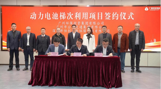 2023年1月12日,“动力电池梯次利用项目签约仪式”在广州环保投资集团有限公司顺利举行。协会会员单位广州环保投资集团有限公司、广州市公共交通集团有限公司、深圳市恒创睿能环保科技有限公司通过强强联合,共同出资成立合资公司--广州环投恒创科技有限公司,拟在番禺区投资建设年回收处理1.5万吨动力电池梯次利用项目,探索动力电池绿色低碳循环利用、无害化处理的发展路径,打造广州市新能源低碳示范项目。广东省循环经济和资源综合利用协会周力会长出席并见证了签约仪式。