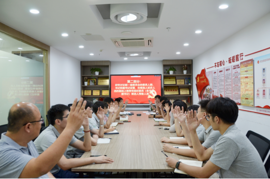 会议开始由曾思慧副书记汇报换届大会筹备工作情况;接着,刘建华书记在会议明确了下一届支委会的委员人数、候选人初步人选(7名),并在初步人选基础上推荐党支部书记和副书记候选人预备人选,全体参会人员全票举手通过,还对正式换届选举各项准备工作作出全面安排。