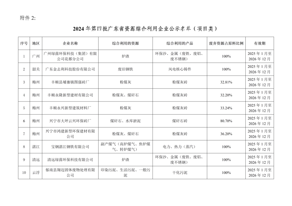2、2024年第四批广东省资源综合利用企业公示名单(项目类)