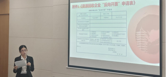 一级行政执法员陈翠贤作资源回收企业反向开票政策宣贯