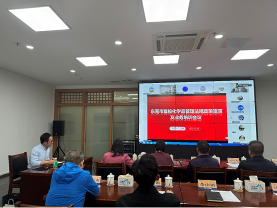 为进一步提升东莞市属地管理部门及企业对监控化学品的辨识能力与法规政策认知,强化禁化武履约能力,12月23日,东莞市工业和信息化局成功举办监控化学品管理条例普法宣贯及业务培训会,市工信局工业节能与民爆科负责人,相关镇街工信部门业务负责同志及监控化学品企业代表通过线上线下结合的方式参会。